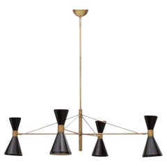 Italian Mid‑Century Modern 6 Arms Chandelier, Two‑Tone Diabolo Adjustable Shades