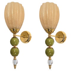 Pair of olive green and amber Murano Glass sconces
