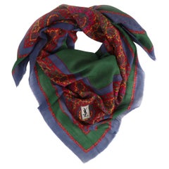 Yves Saint Laurent YSL Wool and Silk Floral Paisley Silk Scarf