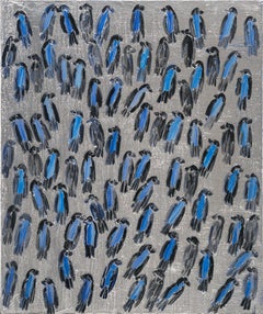 Hunt Slonem "Blue Finches (Cordon Bleau)" Original painting of birds in oil