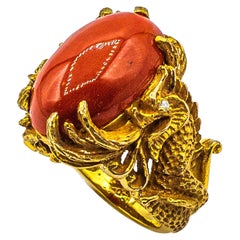 Coral, Diamond, White Diamond, Onyx, 14k Gold, Yellow Gold
