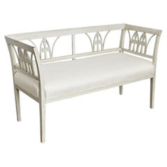 A delightful Swedish bench from the early 19th century, this petite settee in the classic Gustavian taste for lightness and simplicity features a chalk-white painted frame. The bench...