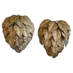 Pair of vintage Italian tole metal wall light leaf leaves sconces. Newly wired, new sockets. I have 3 pairs available at time of listing. Dimensions: 14.25 H x 11.5 W x 5 D.