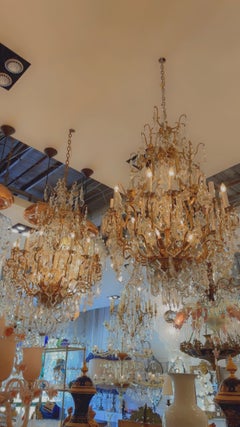 Large Pair Of Brilliant 25 light bronze dore French Chandelier. Large and beautiful clear crystals.