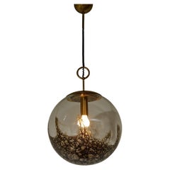 La Murrina pendant ball from the 1970s. The lamp is made with brass supports and a blown glass sphere inside which there is, at the bottom, an iron mesh that occupies a little less t...