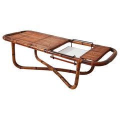 Long bamboo coffee table with removable lowered tray. By Tito Agnoli for Bonacina, Italy, ca. 1950.