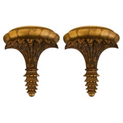 20th-C. Regency Style Gilt And Faux Tortoise Wall Brackets / Shelves - Pair