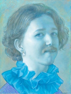 Connection - Blue Portrait - Original oil painting by Bruno Surdo
