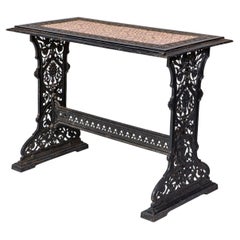 Antique French Art Nouveau Wrought Iron & Tiles. Orangery Table with Tile Top