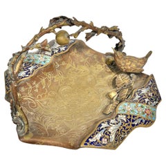 19th Century French Champleve Enameled Bronze Centerpiece Basket Aesthetic Style