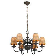 A beautiful example of Paavo Tynell's interpretation of the baroque style chandeliers from the 1930s-1940s. The lamp model is 1811 and is made with oxidized brass. The light bulbs ar...