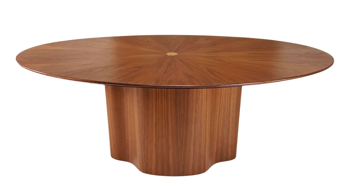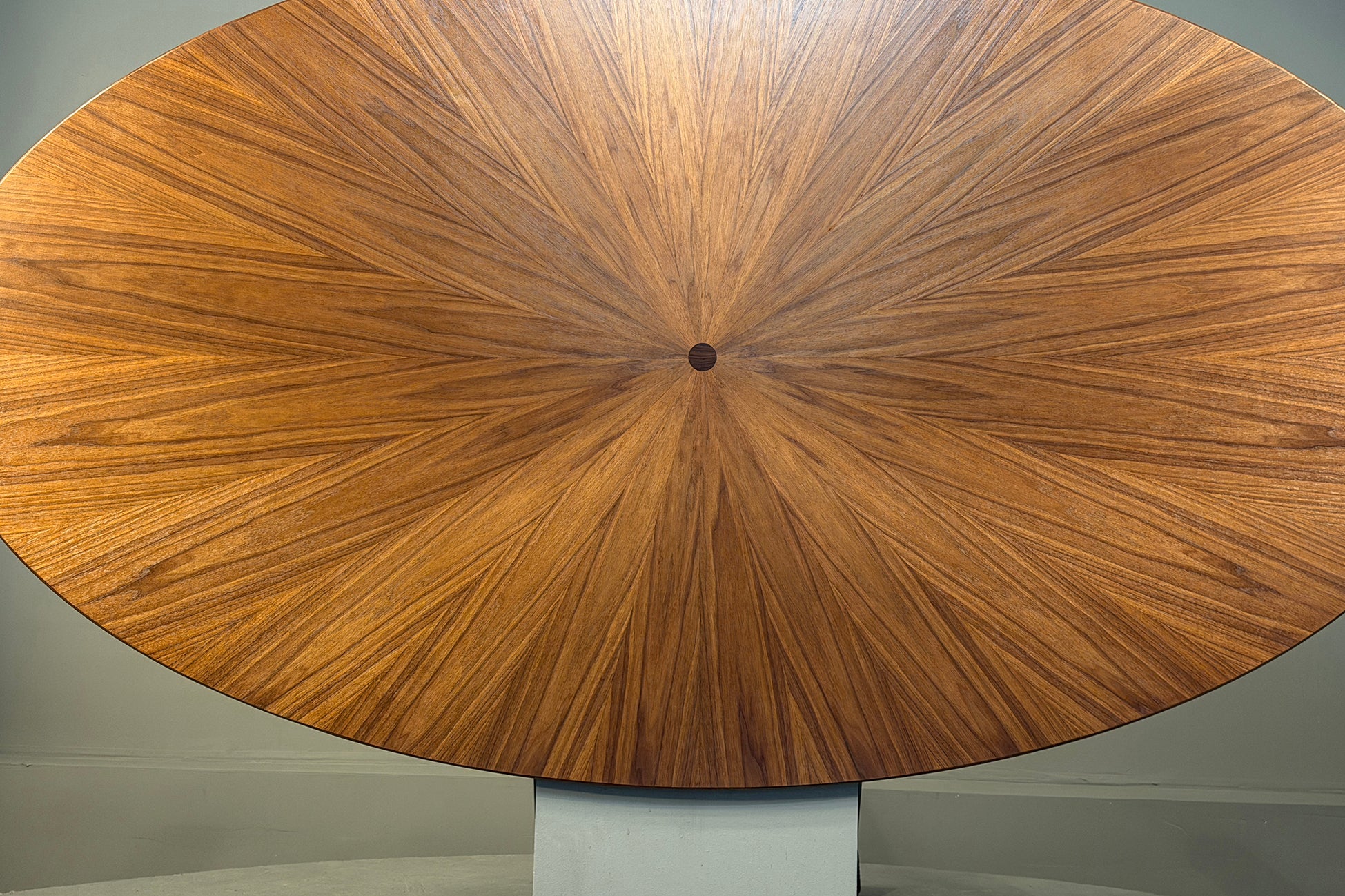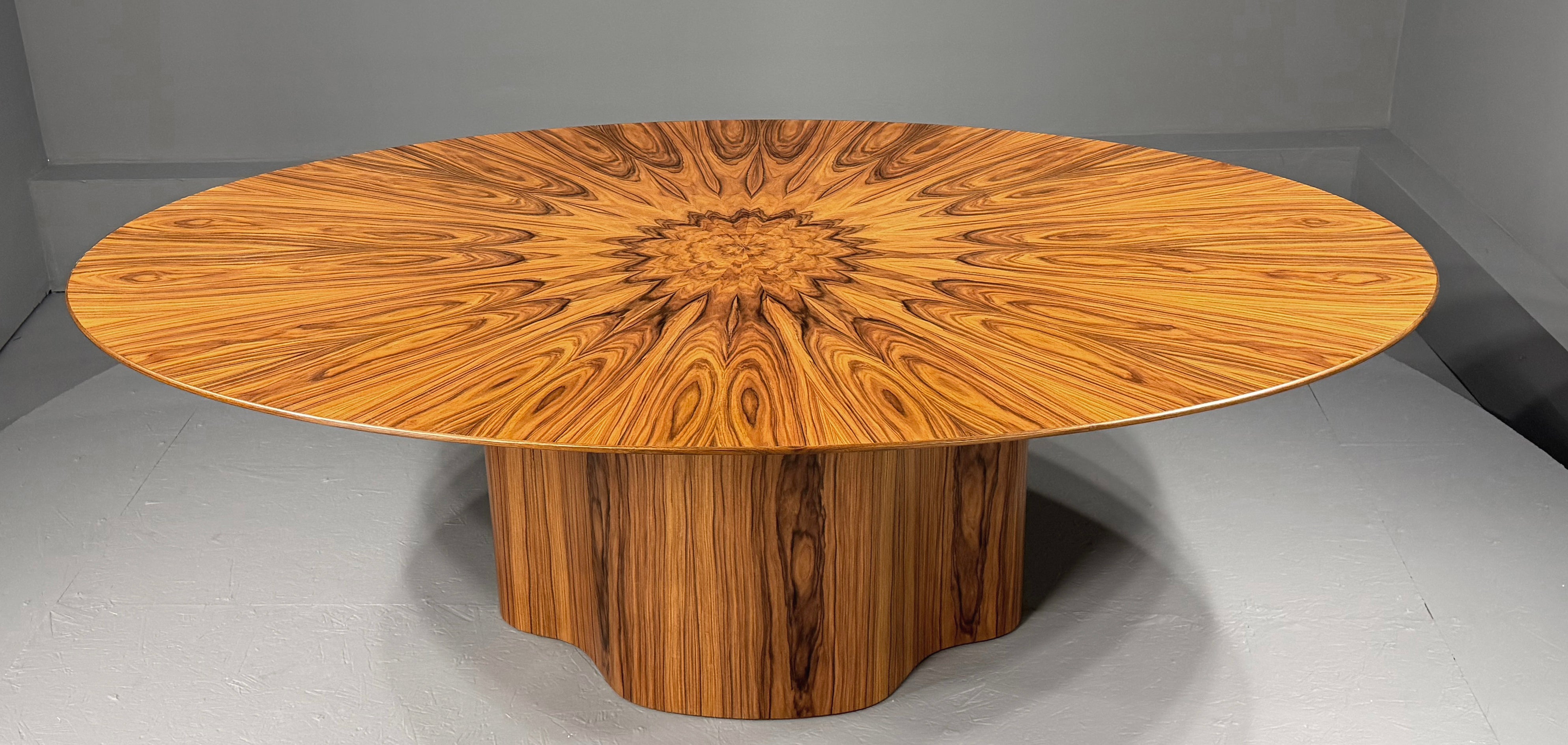 84" Oval Walnut Dining Table Top with Radial motif by Aaron Saxton.