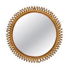 Midcentury Rattan and Bamboo Round Wall Mirror Franco Albini Style, Italy 1960s