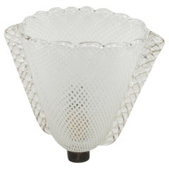 Midcentury Wall Lamp Sconce in Brass & "Reticello" Glass by Venini, Italy 1950s