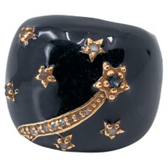 Diamond, Black Diamond, Blue Sapphire, 14k Gold, Gold Plate, Brass, Enamel