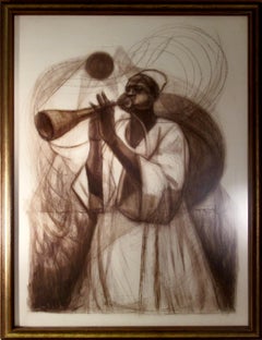 This artwork "The Musician" 1975, is a brown ink, charcoal and conte crayon on paper board by renown African/American artist Herman Kofi Bailey, 1931-1981. It is hand signed and date...
