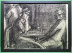 Lucy Dickens (1959-) English original pencil graphite BAR ROOM PORTRAIT STUDY