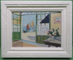 Fine Mid 20th Century French IMPRESSIONIST oil painting CANNES ROOFTOPS FRANCE
