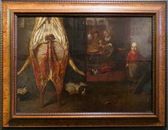 Rare 17th Century OLD MASTER oil on panel DUTCH SCENE of a Butchers Shop