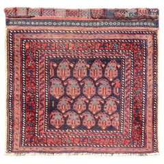 Antique Kurdish Saddle Bag with Indigo Field and Geometric Motifs