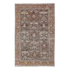 Antique Persian Sultanabad Rug with Warm Brown Field and Allover Vine Design
