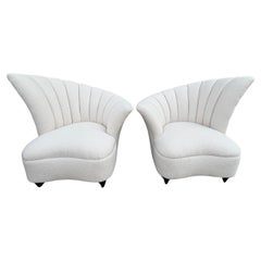 Pair Of Asymmetrical Channel Back Lounge Chairs