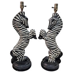 Offered is a large pair of Hollywood Regency style plaster lamps in the form of black and white opposing zebras. This great pair of m...