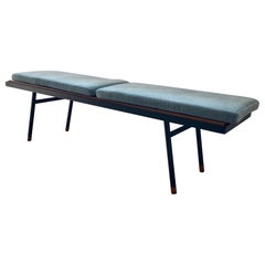 The Montrose Bench has a steel frame, teak seat and two loose cushions. Suitable for indoor. Cushions are detachable. Retails for $3475