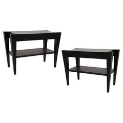 Pair Of Post Modern Ebony Black Architectural Frame Nightstands