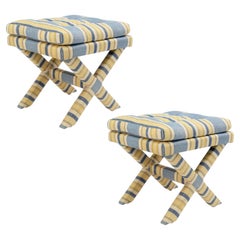 Pair Of Striped Billy Baldwin Style Cross Leg Ottomans