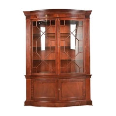 Baker Furniture Style Georgian Mahogany Breakfront Bookcase Cabinet, Circa 1940s