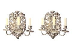 1900's pair of silver plated Baroque style Caldwell sconces with two lights
