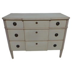 This is a unique Gustavian Style 7 drawer Dresser. its been restored and repainted with Milk Paints "Oyster White"