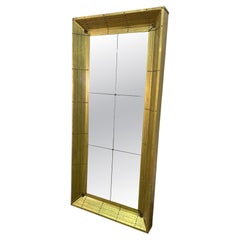 This impressive oversized mirror features a substantial brass frame with a bold architectural presence. The frame is composed of vertically ribbed brass panels accented with visible ...
