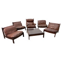 Leather Lounge Set, 1960s, Attributed to Carl Straub