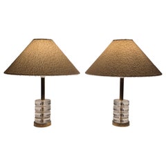 A pair of elegant tabel lamps with Orrefors glass and brass designed by Carl Fagerlund, Scandinavian / Midcentury Modern,