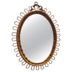 Olaf von Bohr Style Specchio da Parete Ovale in Rattan, Italia 1960s