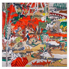 Mightychic offers an Hermes En Liberte! scarf featured in Orange, Vert and Blanc colorway.