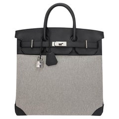 Hermes HAC Birkin 40 Bag Black Toile and Togo Leather with Palladium Hardware