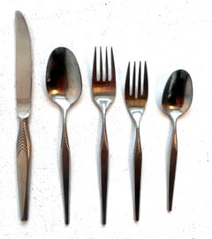 Jorgen Dahlerup and Gert Holbek "Prism" Stainless Flatware Set. Set includes 42 pieces. 5 pieces per place setting! Plus 2 Butter Knives. Designed in 1969. Forged and hand-polish...