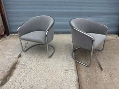 Pair of Anton Lorenz for Thonet Furniture Chrome Barrel Chairs. Newly reupholstered and ready to go! Nice size and scale!