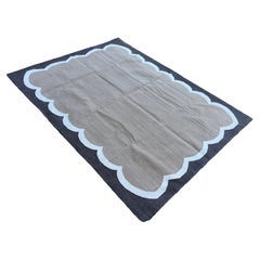 Handmade Cotton Area Flat Weave Rug, 6x9 Blue And Cream Scalloped Indian Dhurrie
