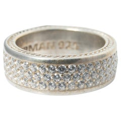 Circa 2024 David Yurman "Streamline" collection .925 Sterling Silver Band Ring, 7.5 M.M ( 5/16 ) inch wide, Pave set with 3 Rows of Round Brilliant cut Diamonds totaling 1.90 Carats....