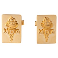 Circa 1950s Jerry Lewis owned and worn 14k Yellow Gold cufflinks, the top measuring 1 inch x 5/8 inch, and have a raised Logo of the MDA of which Lewis was passionately involved for ...