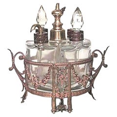 French Victorian Bronze and Crystal Perfume Bottle Set