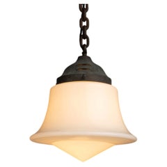 Curved and pointed opaline glass shade with patinated brass fitter.