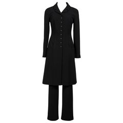 Fall 2002 CHANEL Black Coat Dress / Long Jacket and Trousers Suit Pearl Buttons