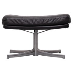 Collection Walter Knoll Black Leather Foot Stool 1970s Germany