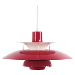 PH 5 pendant in red lacquered metal from Louis Poulsen designed by Poul Henningsen. Classic Danish lamp with glare-free and functional light.