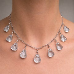 A dramatic statement necklace featuring 350 carats of faceted rock crystals and diamond accented teardrop pendant, paired with a textured, oversized hollow-link chain uni...